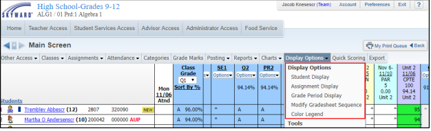 The Student Display allows you to modify the display of student information on the Gradebook Main Screen. Any changes made to the Student Display affect all of your Gradebooks and not just the one you are currently working in.