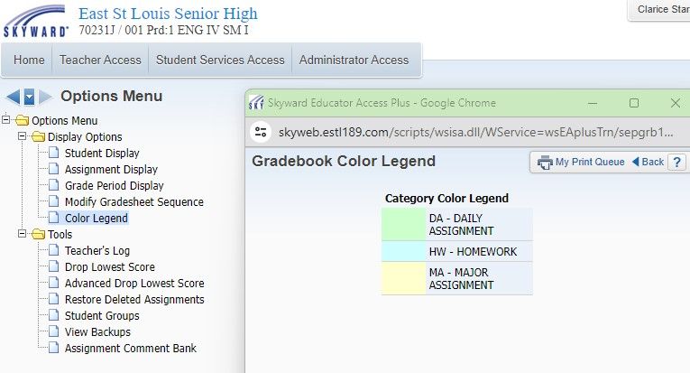 A teacher's gradebook has different display options. In the gradebook, select the DISPLAY OPTIONS button to create your preferred view for your gradebook. This will allow you to customize your Gradebook.