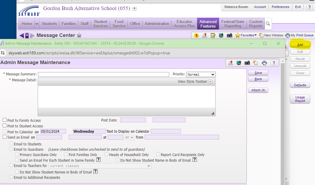 Mass Emails through Skyward Message Center